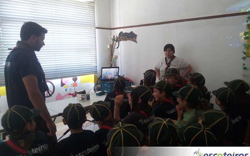 Selva na Sede foi uma atividade programada para responder a dois compromissos da nossa Alcateia: 1. Foi destinado apenas a Lobitos inscritos no Acampamento Regional ORIGENS e passou por efetuar diversas tarefas: - Pintar t-shirts (Feneca, Lince, Panda, Lebre e Esquilo. - Fazer Bandeira da Alcateia; - Aprender sinais que serão aplicados durante acampamento; - Como fazer a mochila. 2. Para toda a Alcateia e tinha como objetivo trabalhar a Insígnia da Lusofonia. A partir das 14H00 começamos a falar Skype para o Grupo Escoteiro de Itupeva e a partir das 15H00 falamos para o Grupo Escoteiro de Ipanema (A nossa Arara falou com a Lobinha Lorena). Ambos os contactos são do Brasil e estão enquadrados no plano de formação da Lusofonia da nossa Alcateia. Neste trimestre estabelecemos 5 contactos com o Brasil e para o ano pretendemos alargar aos restantes países Lusófonos. É mais um frente que a Alcateia está a cobrir e pretende cumprir... sempre pelo MELHOR POSSÍVEL. Boas férias a todos aqueles que não irão connosco ao ACREG ORIGENS, até para o ano. Boa caça!